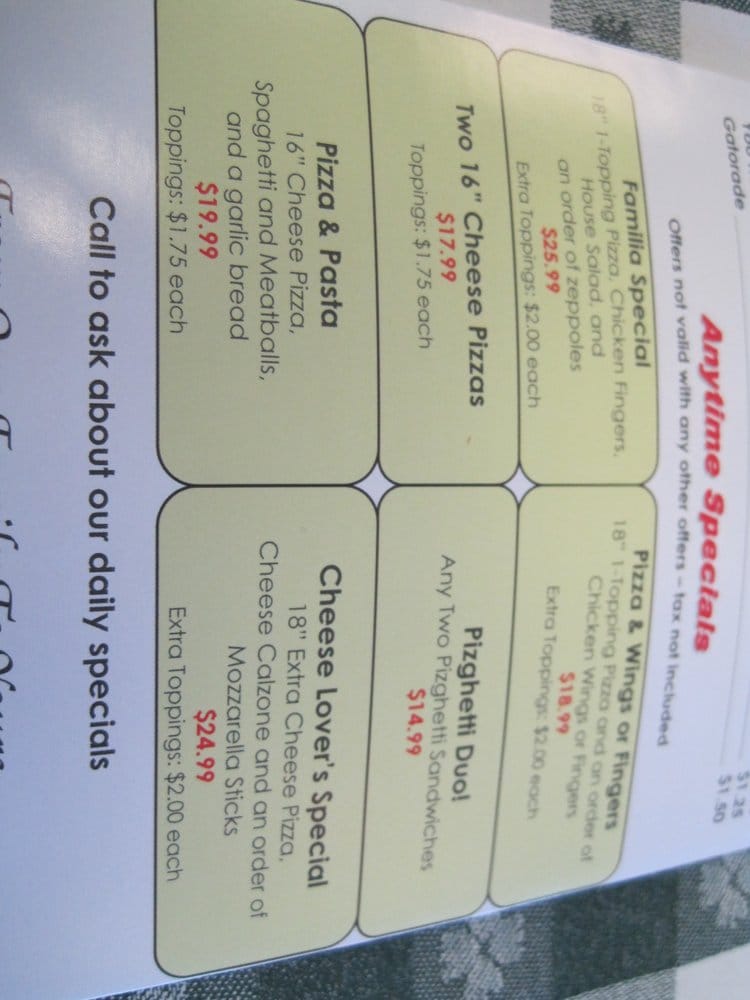 The menu highlights include their specialty pizzas, notably the Familia house pie, celebrated for its robust flavor thanks to their homemade sauce. Customers rave about the authentic NYC thin crust, transporting you to the streets of New York with every bite. For those seeking variety, their wings and subs complement the pizza selections perfectly.